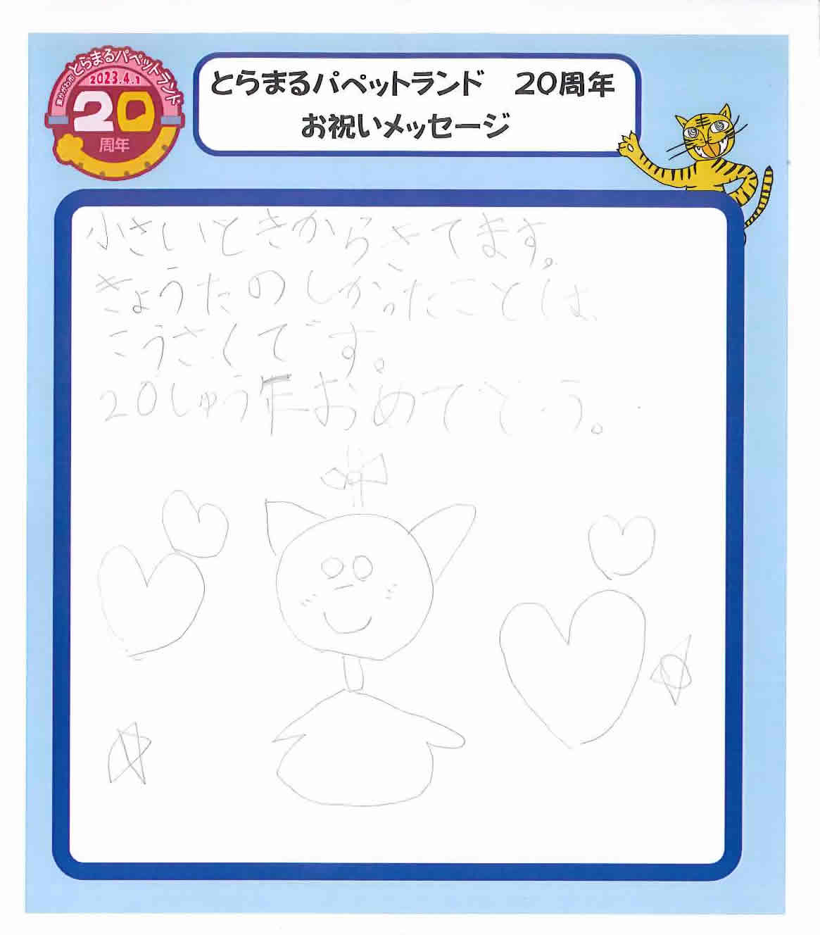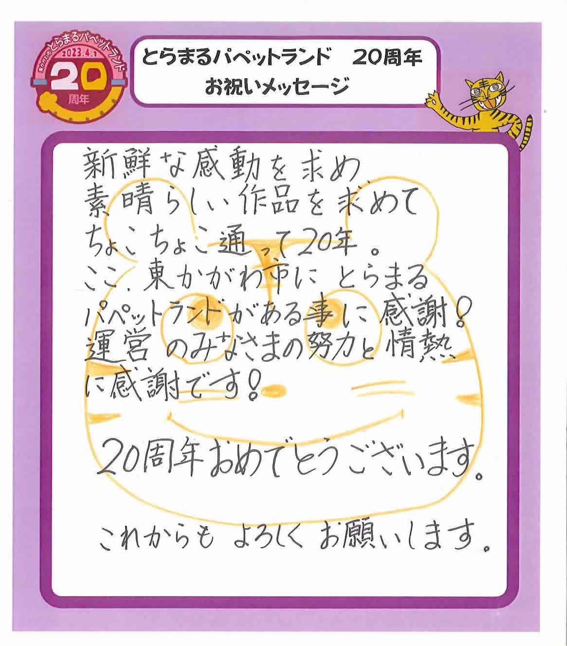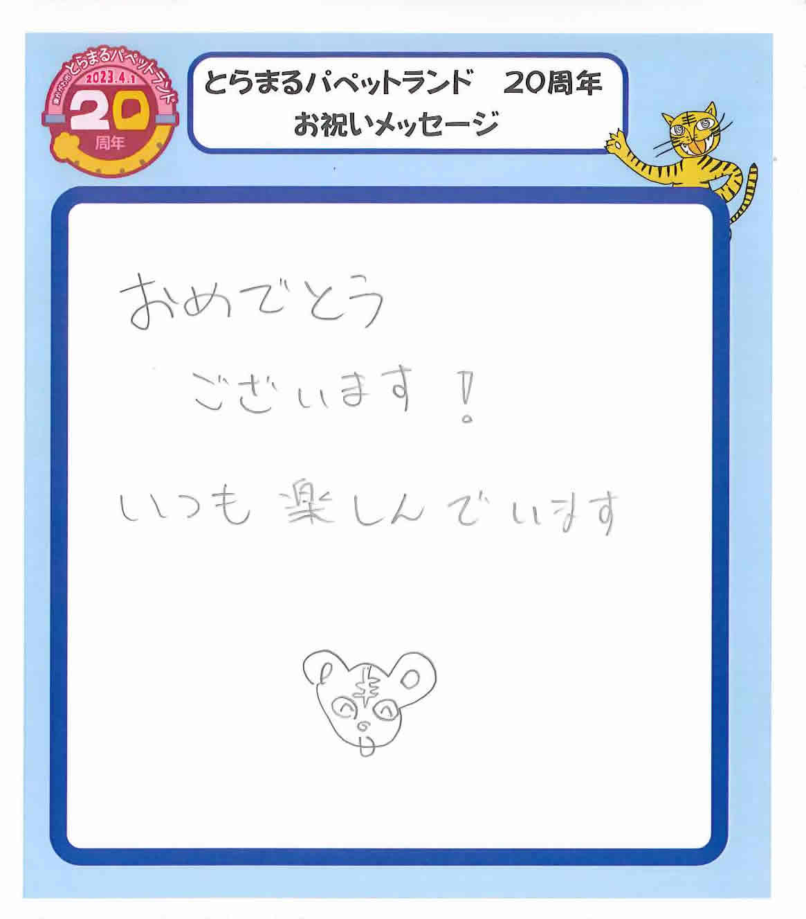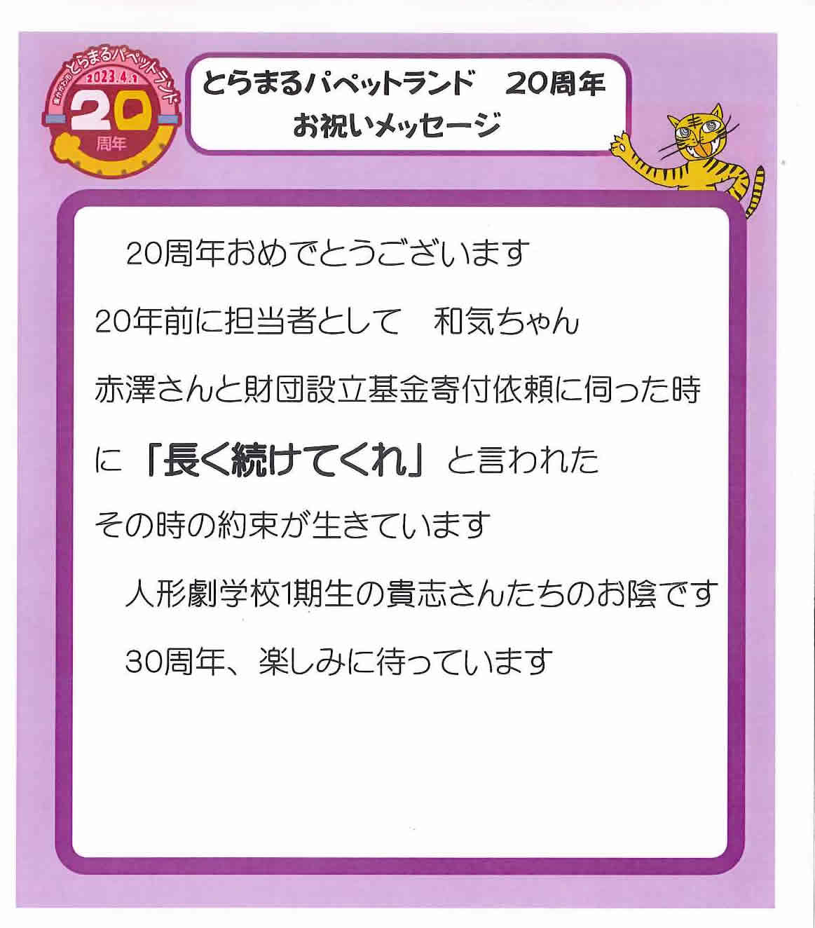 とらまるパペットランド設立20周年 みなさまから頂いたお祝いメッセージの一部を紹介します!!