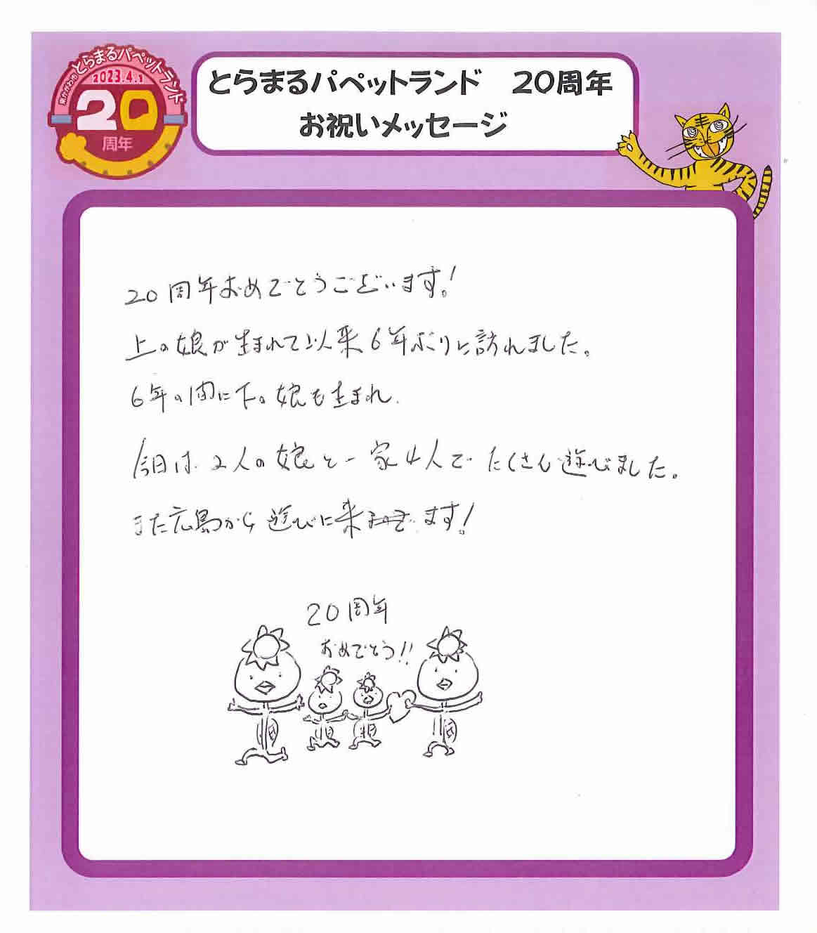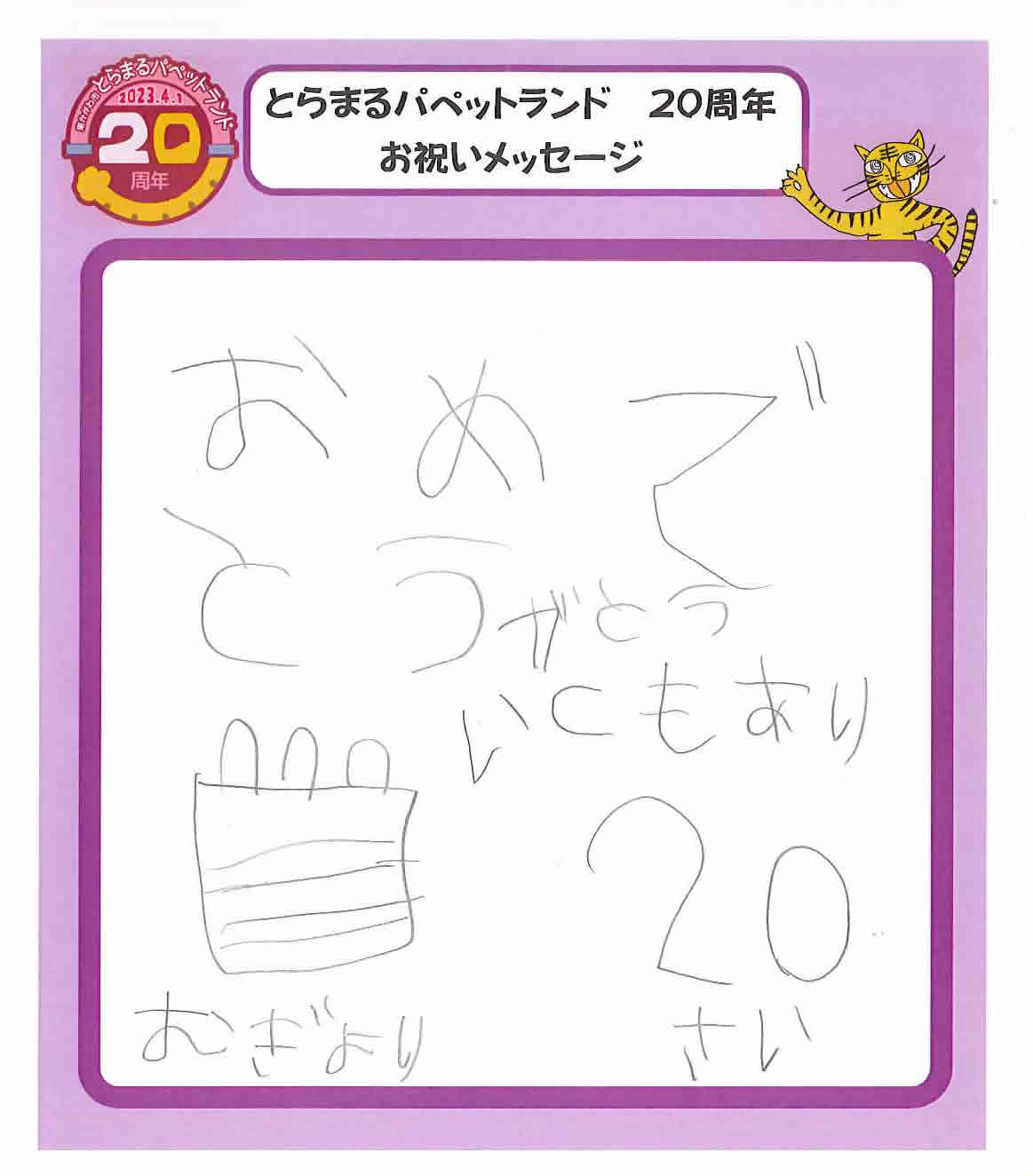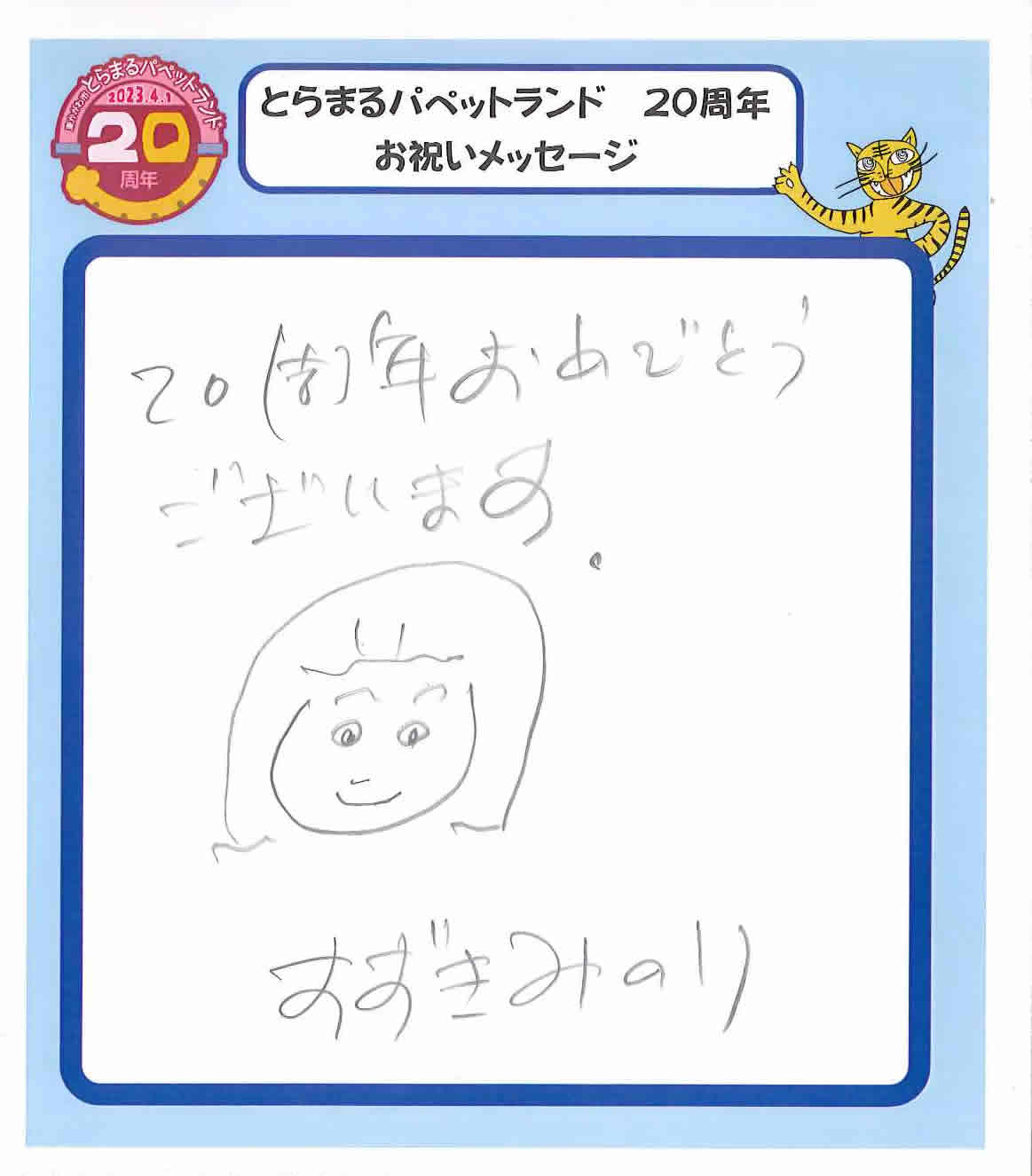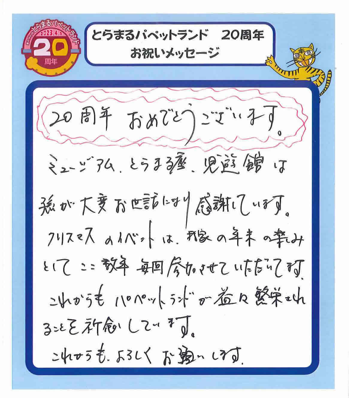 とらまるパペットランド設立20周年 みなさまから頂いたお祝いメッセージの一部を紹介します!!