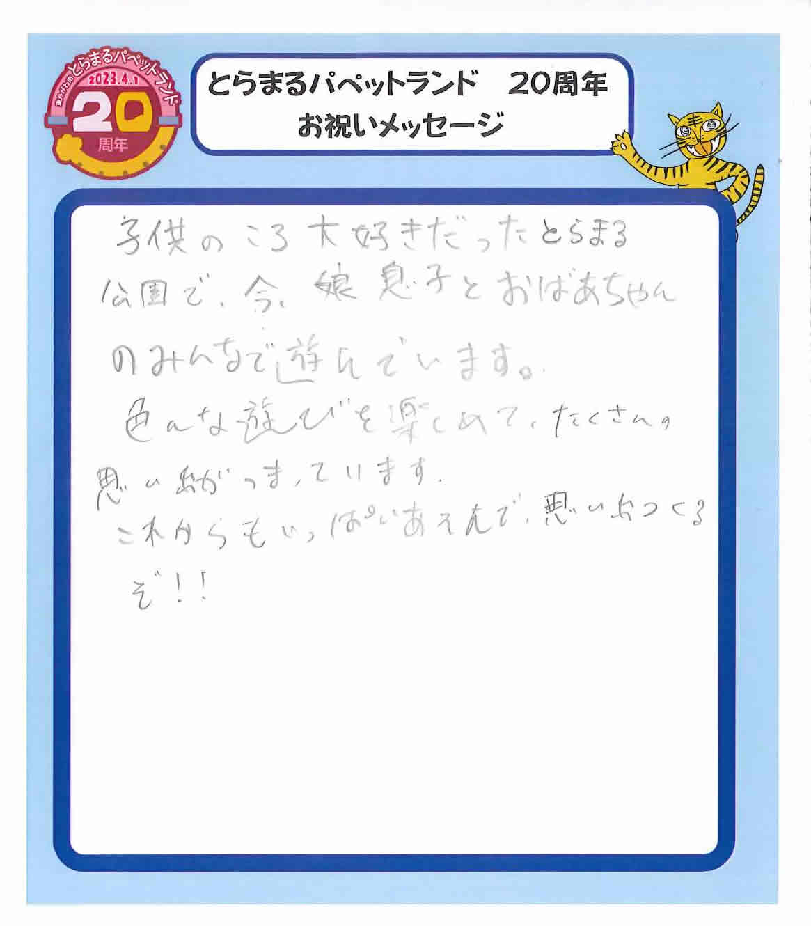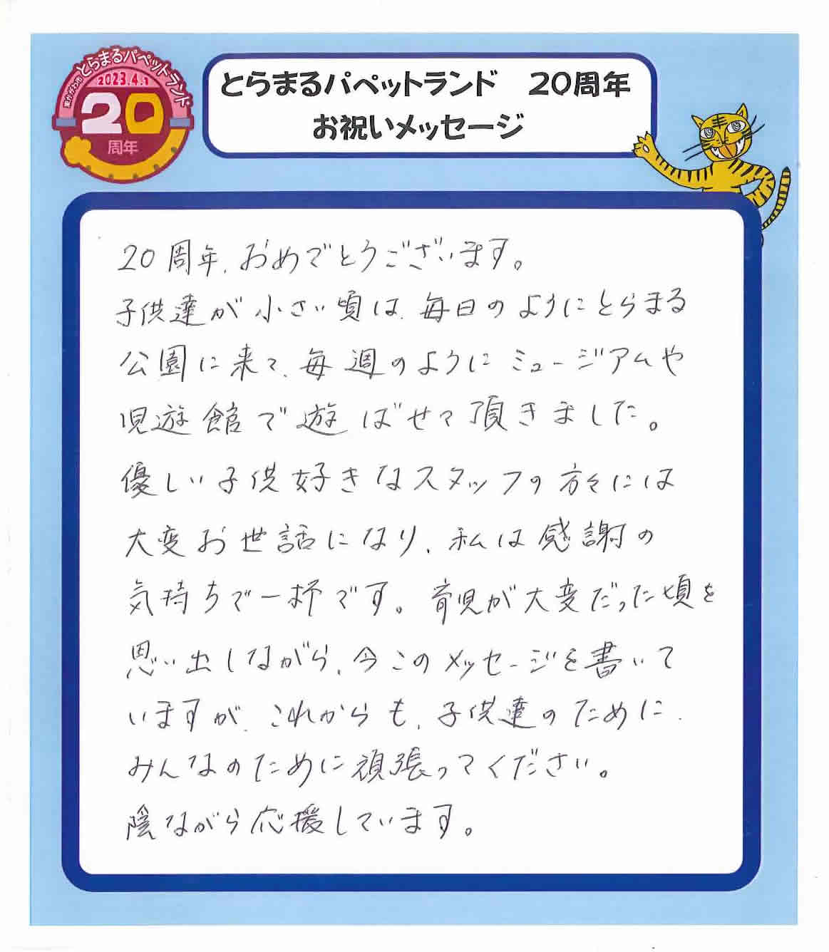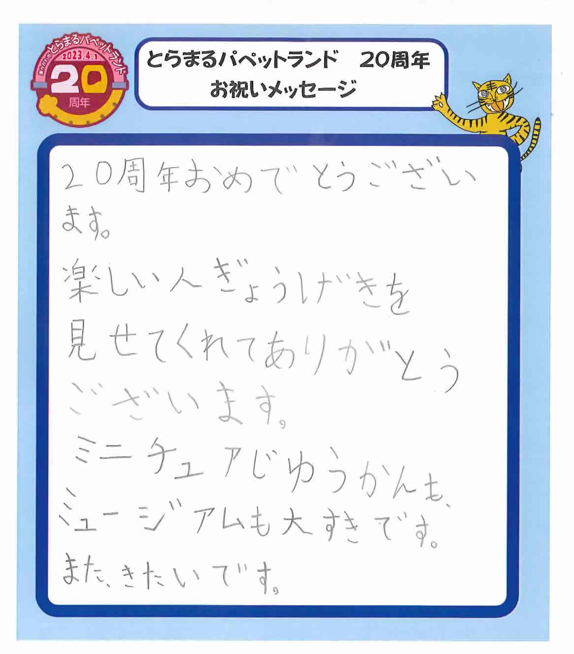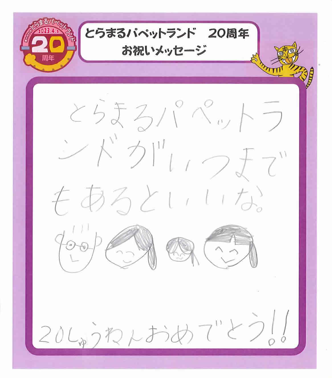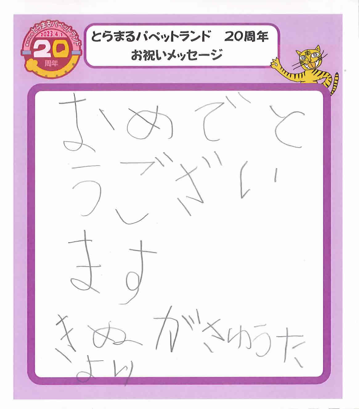 とらまるパペットランド設立20周年 みなさまから頂いたお祝いメッセージの一部を紹介します!!