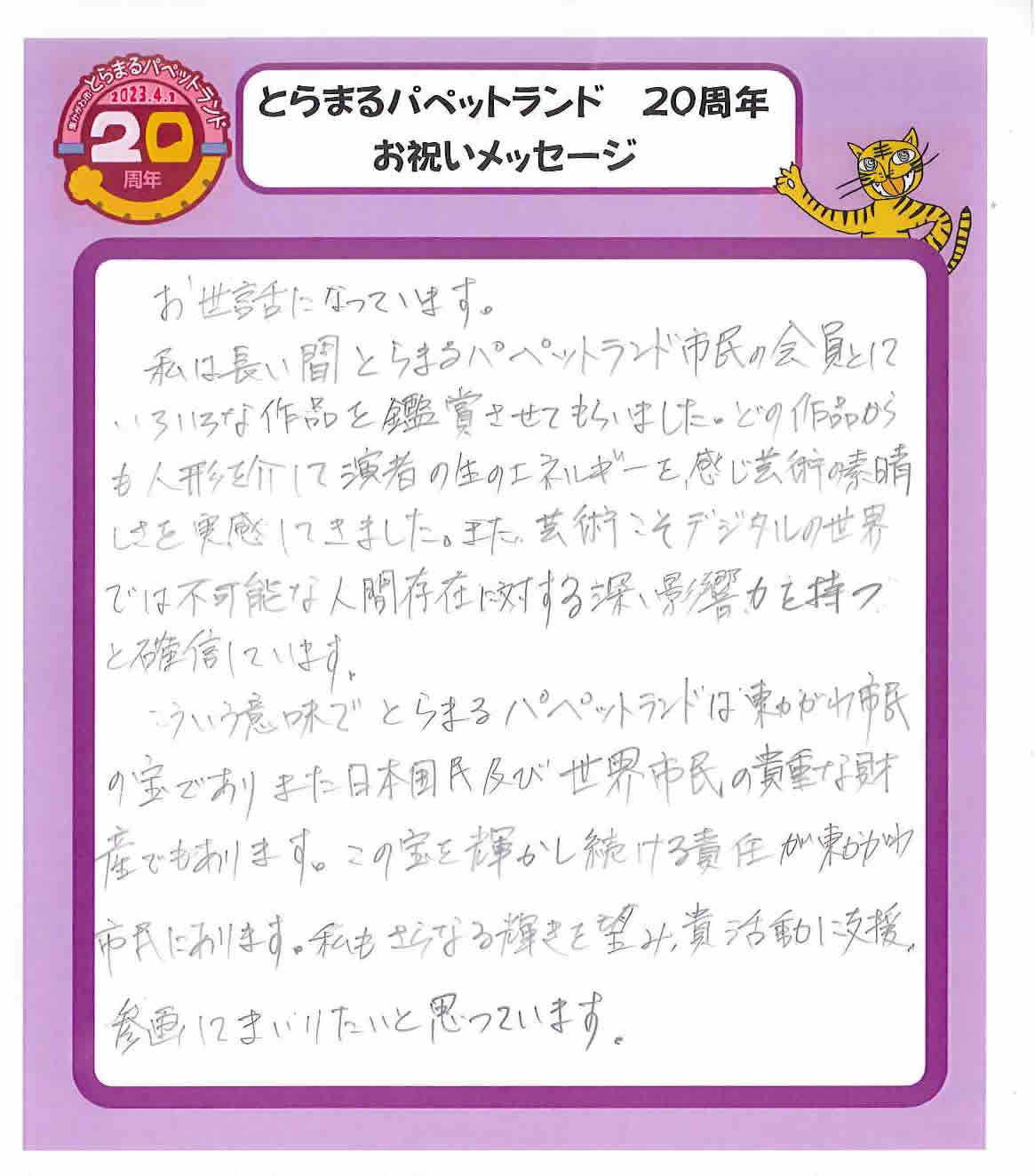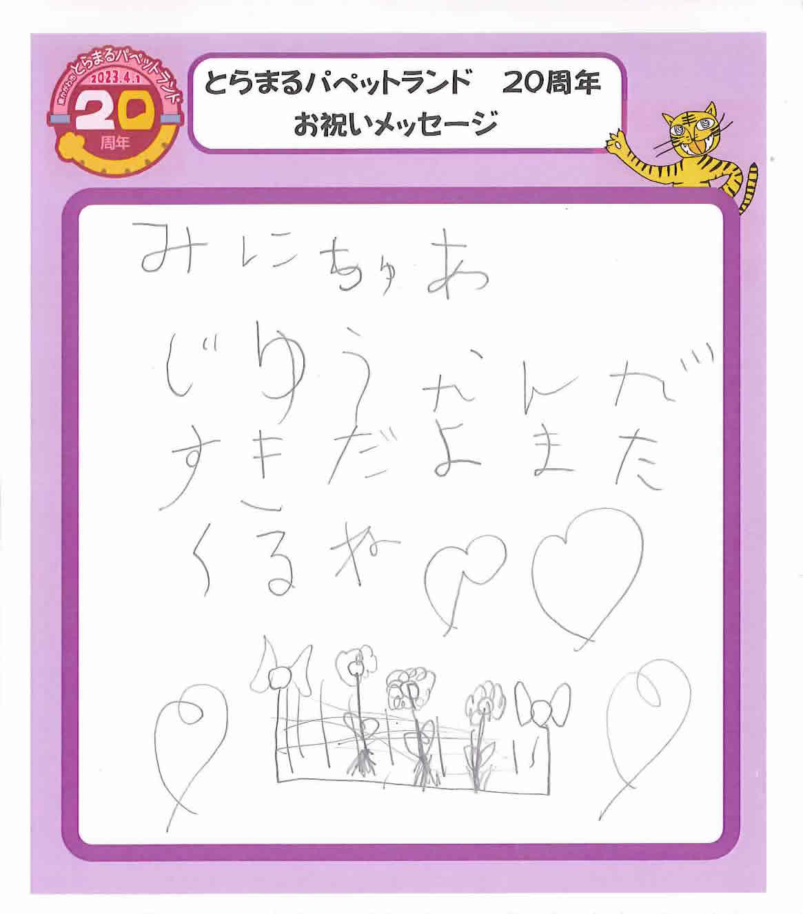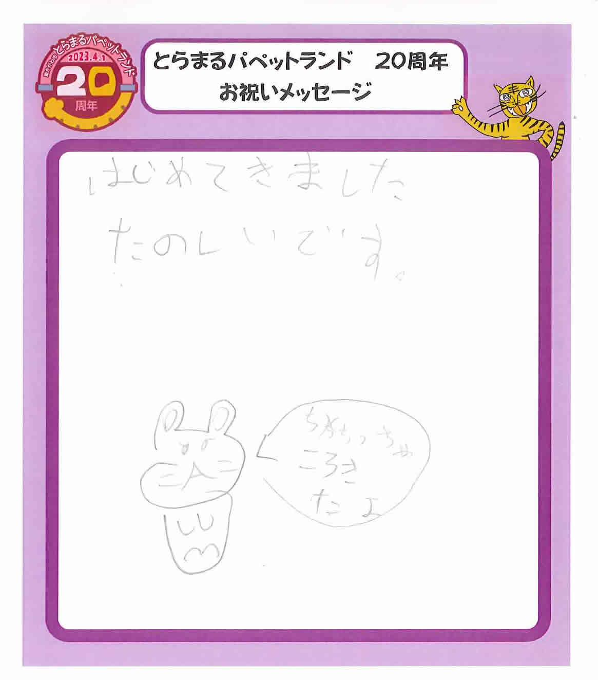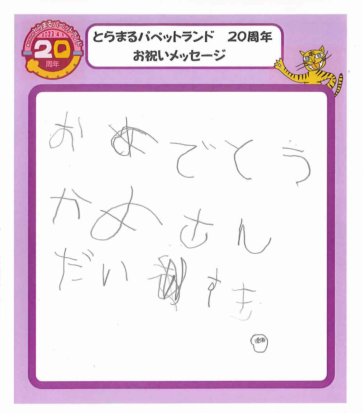 とらまるパペットランド設立20周年 みなさまから頂いたお祝いメッセージの一部を紹介します!!