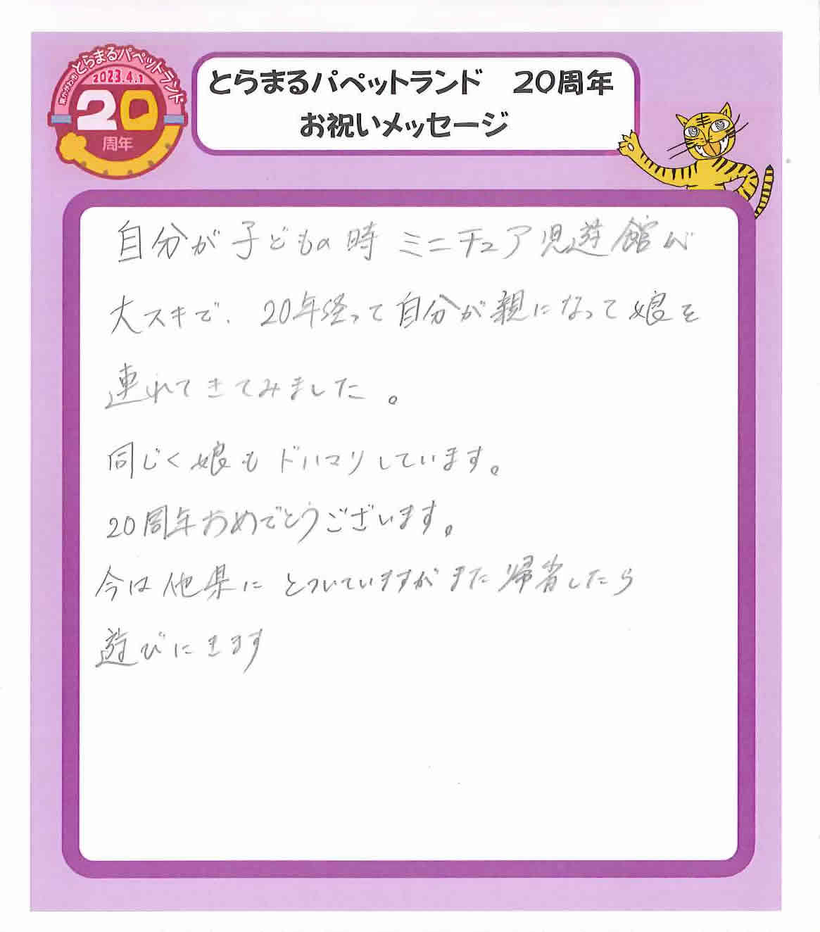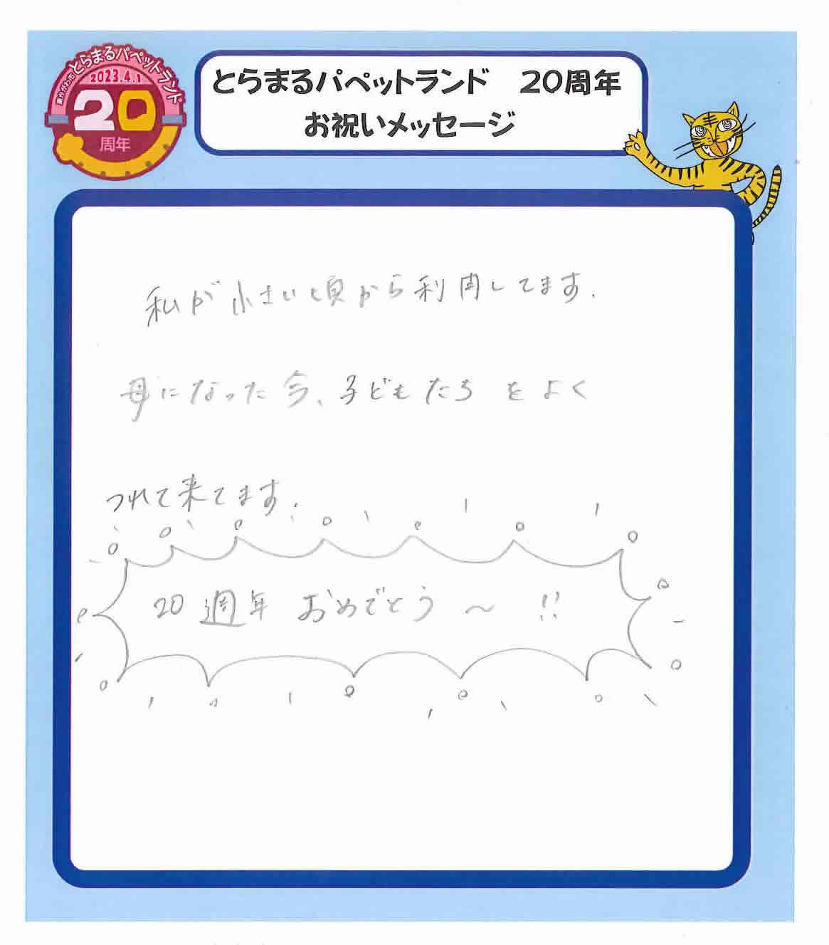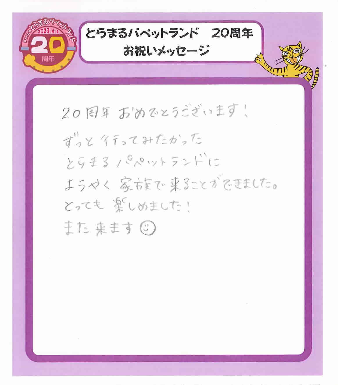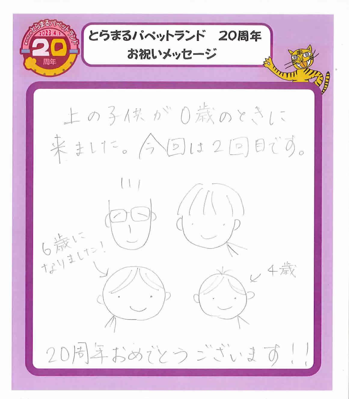 とらまるパペットランド設立20周年 みなさまから頂いたお祝いメッセージの一部を紹介します!!