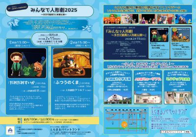 「いたずらパペットランド」チームの2人がお届けする、 いたずらいっぱいの楽しい人形劇3本立て! 元気な遊び心にあふれた演者と、愉快な登場キャラクター たちが織り成すオモシロ・オカシなステージをお楽しみ ください。
