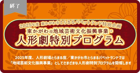 とらまるパペットランドでは年間を通して様々なイベントや特別公演を開催しています。 詳しくは下記をご覧ください。